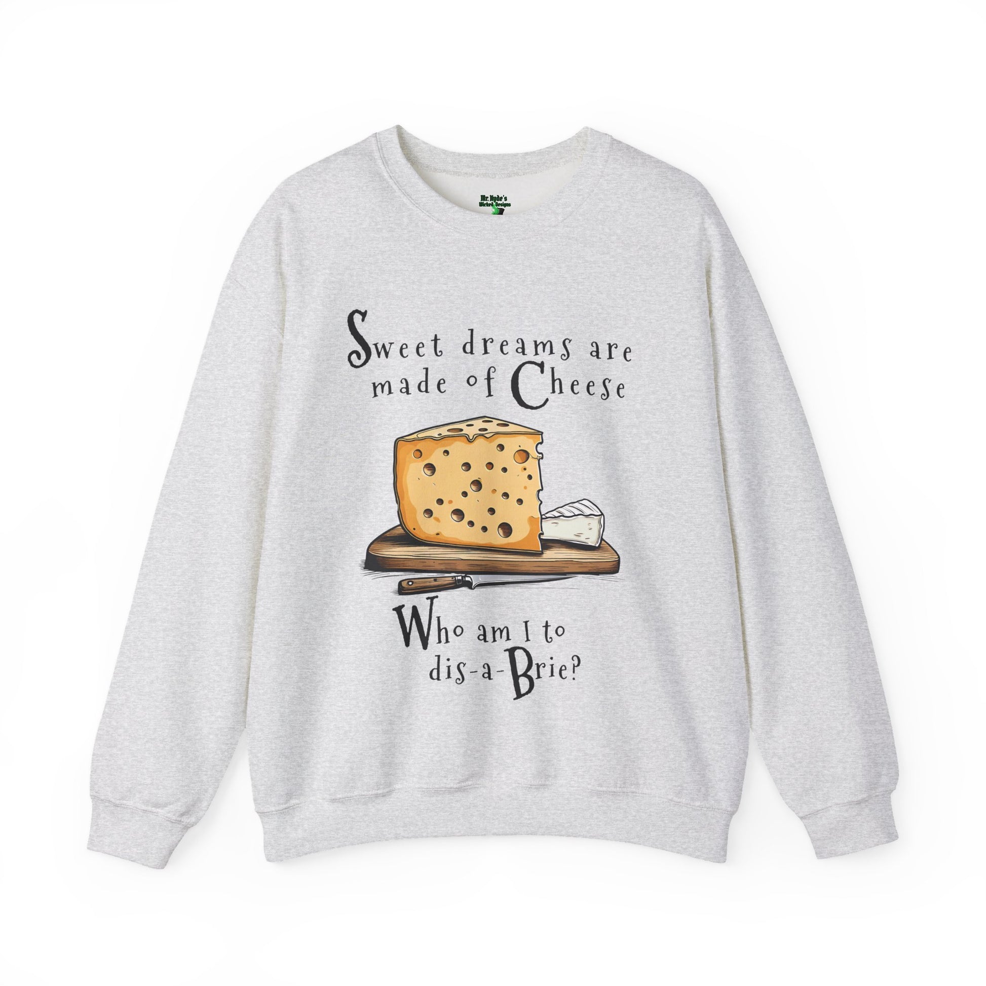 Cheese Pun Crewneck Sweatshirt — "Sweet Dreams Are Made of Cheese" Funny Brie Graphic | Cheese Lovers Cotton Sweatshirt