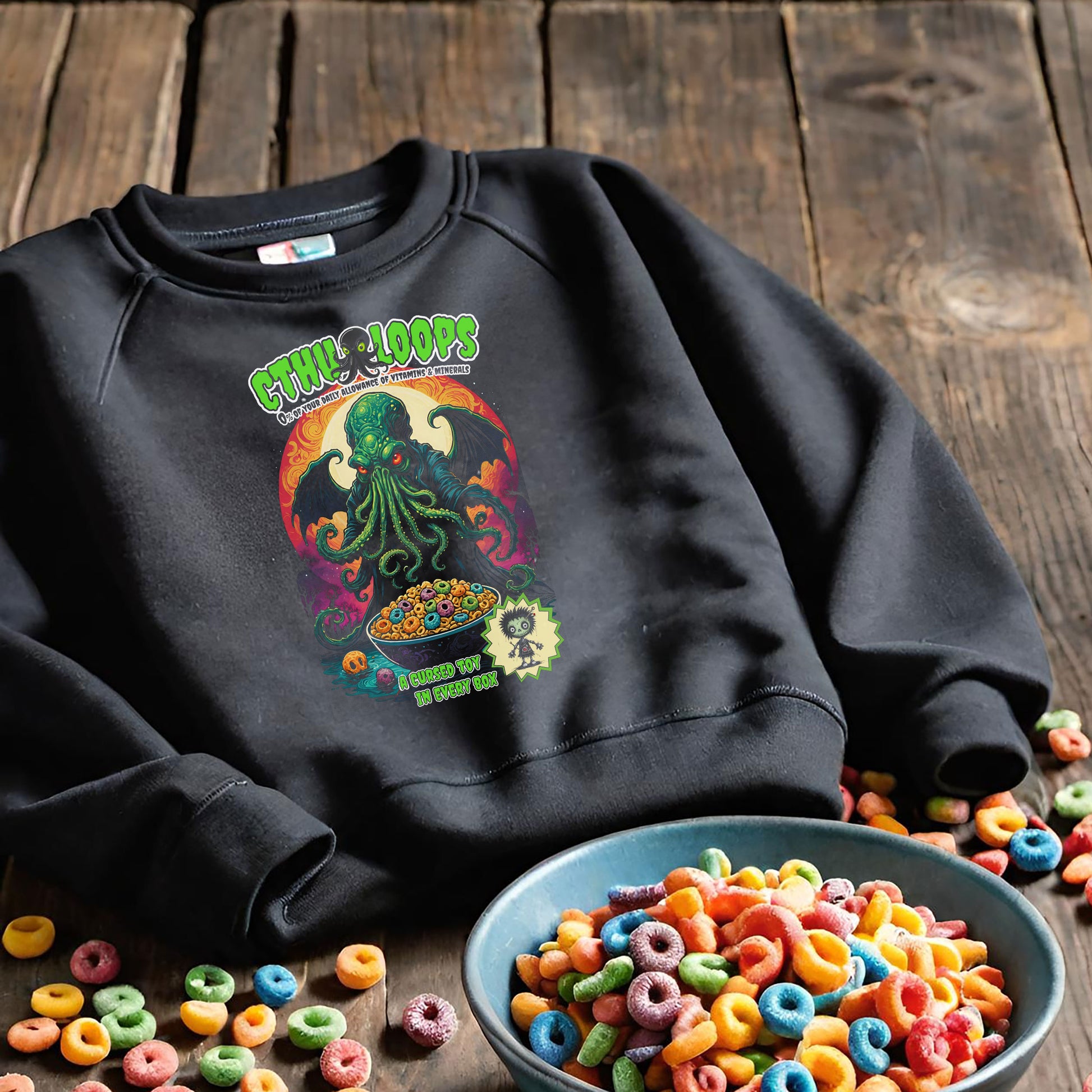 Cthu-Loops Parody Sweatshirt, Halloween, Cthulhu Fan Gift, Elder God Shirt, Lovecraftian Apparel, Black Green Unisex Jumper, Cereal Killer