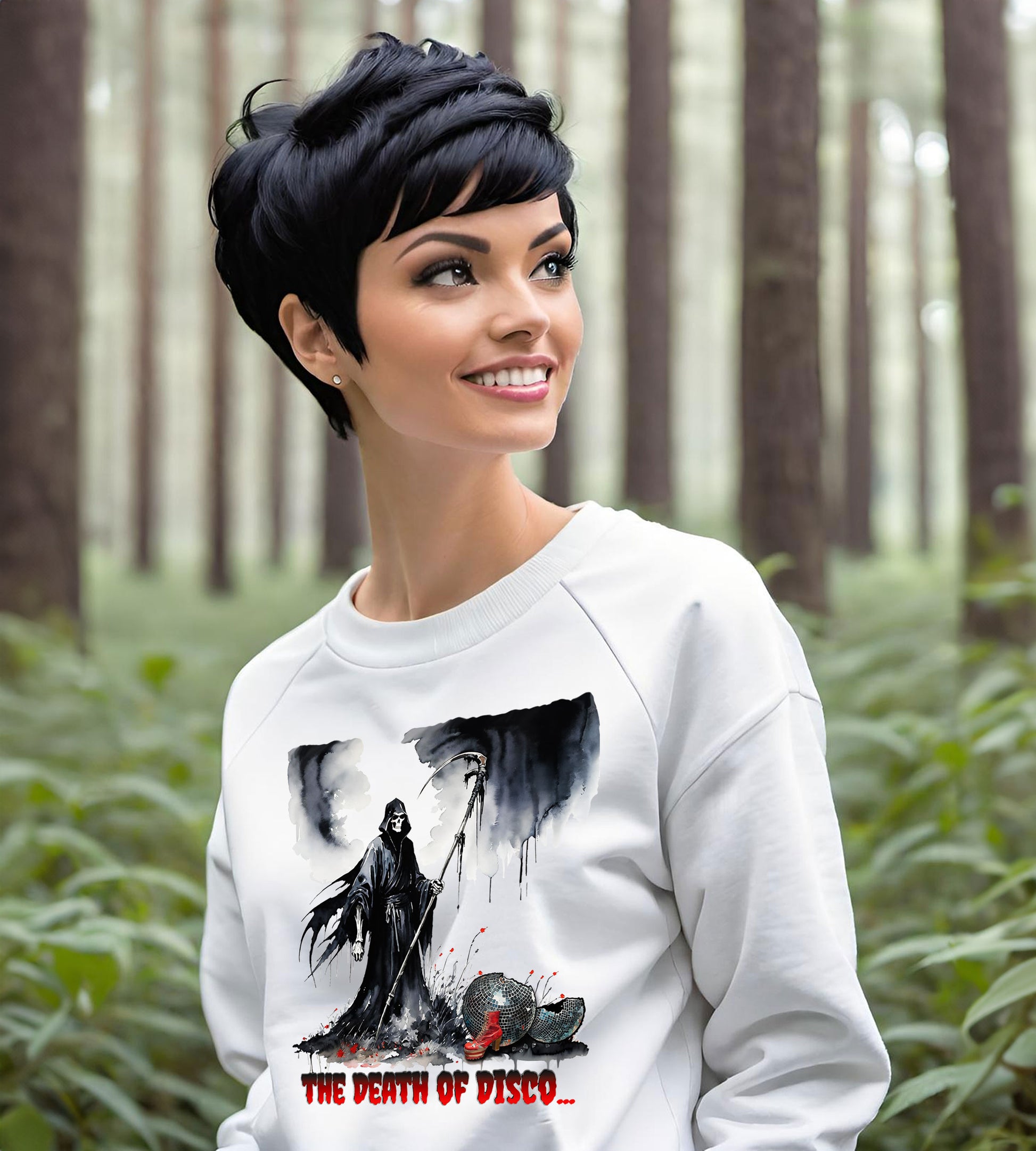 Death of Disco T-shirts, Gothic Disco Parody Tee, Grim Reaper, Disco Tee, Unisex Heavy Blend Crewneck Sweatshirt