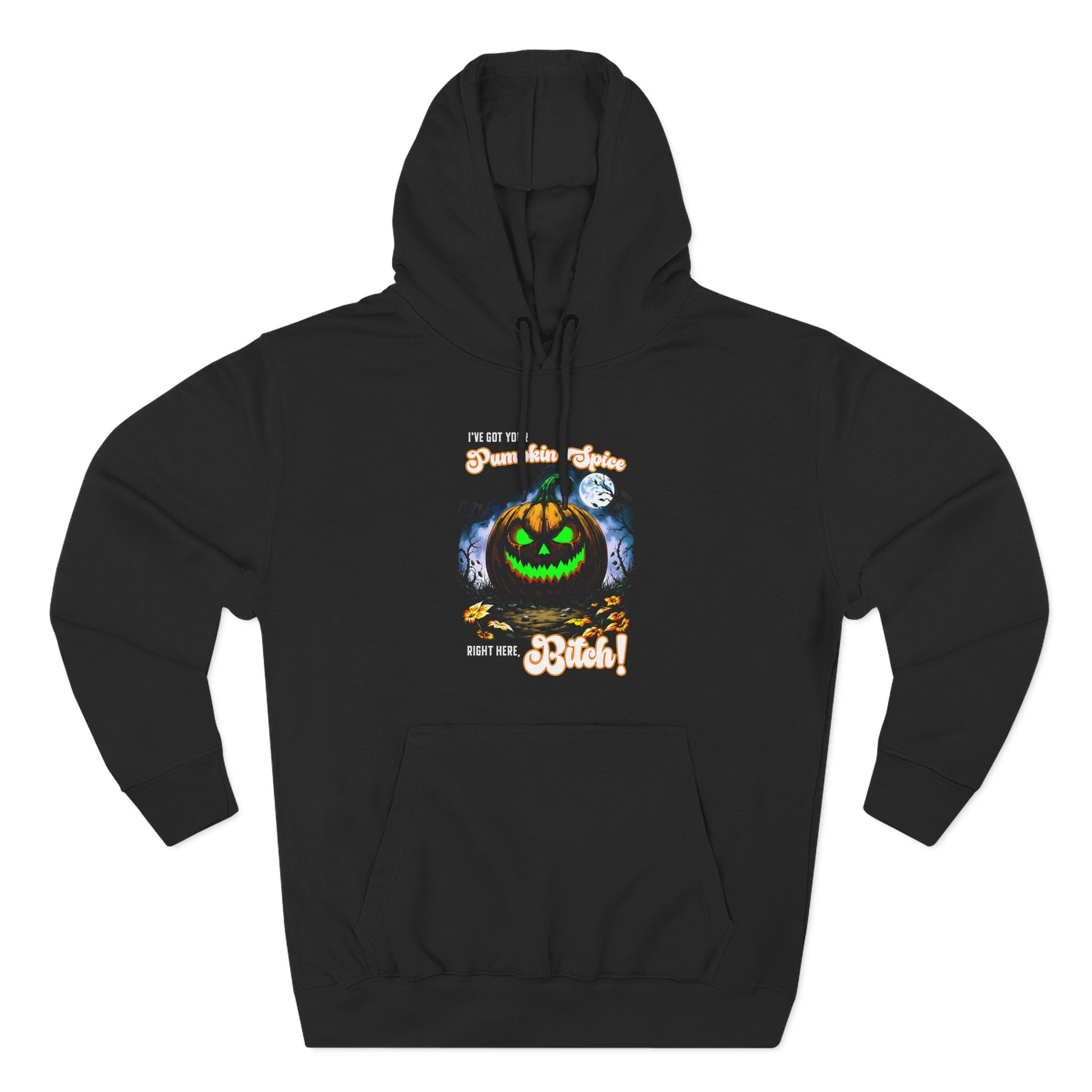 Halloween Three-Panel Fleece Hoodie, Spooky Jack-O'-Lantern & Pumpkin Spice, Festive Fall Apparel, Funny Unisex Sweatshirt, Cozy Seasonal