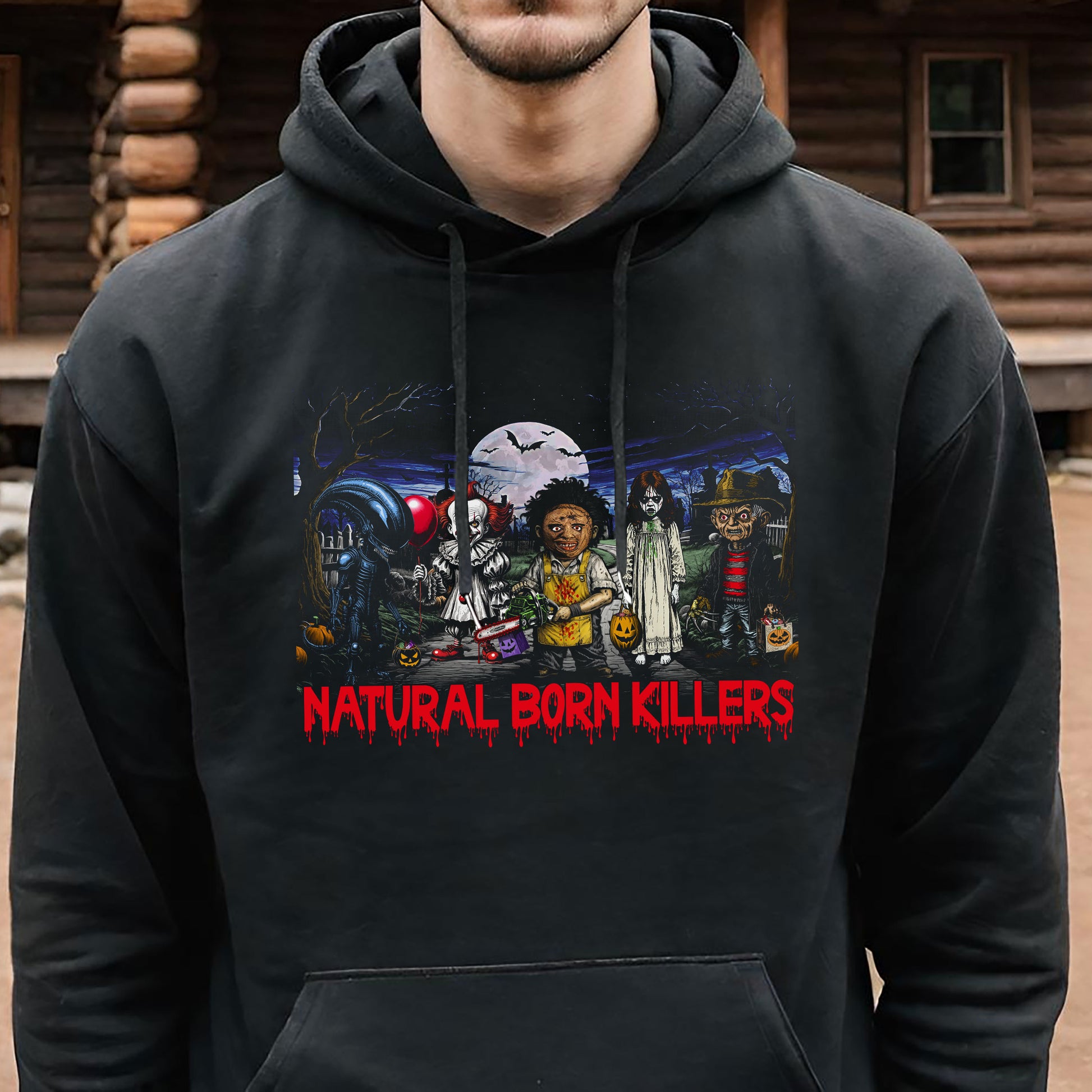Horror Movie Halloween Parody Hoodie, Freddie, Leatherface, Pennywise, Xenomorph, Scary Movie Nerd Shirt, Horror Film Fan Apparel, Halloween