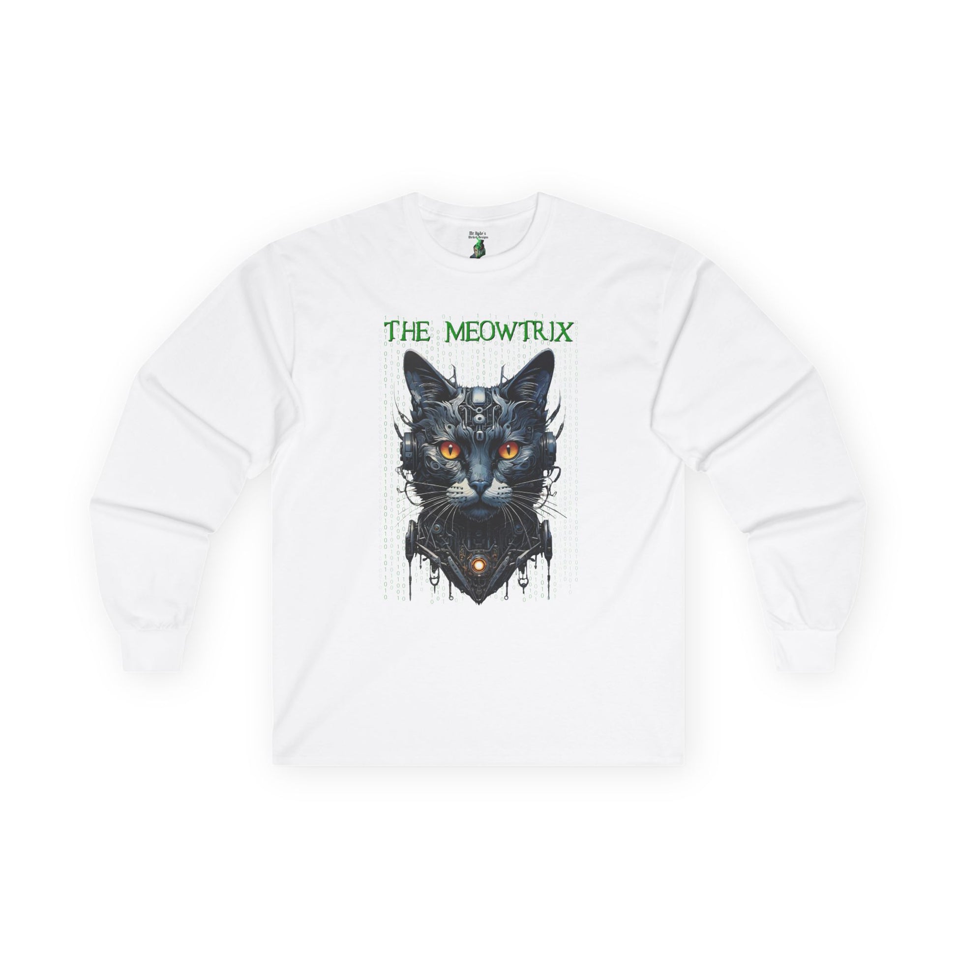 Matrix Cat Parody Tee, Funny Meowtrix Movie T-Shirt for Cat Lovers, Unisex Cotton Long Sleeve Shirt, Humorous Gift for Matrix Fans, Casual