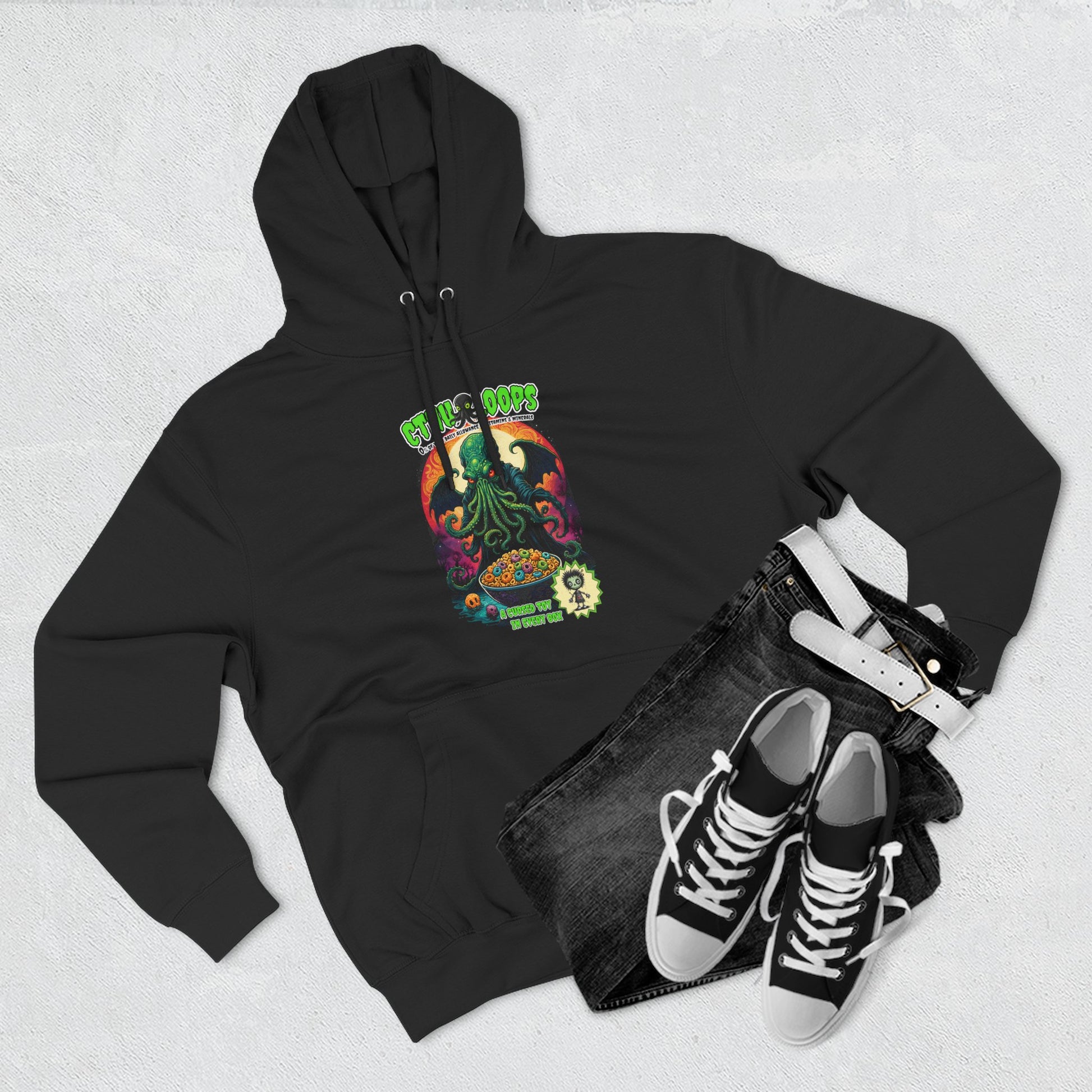 Cthulhu Three-Panel Fleece Hoodie | Trendy Graphic Sweatshirt | Boho Style, Cthulhu Parody Tee, Casual Wear, Gift Idea