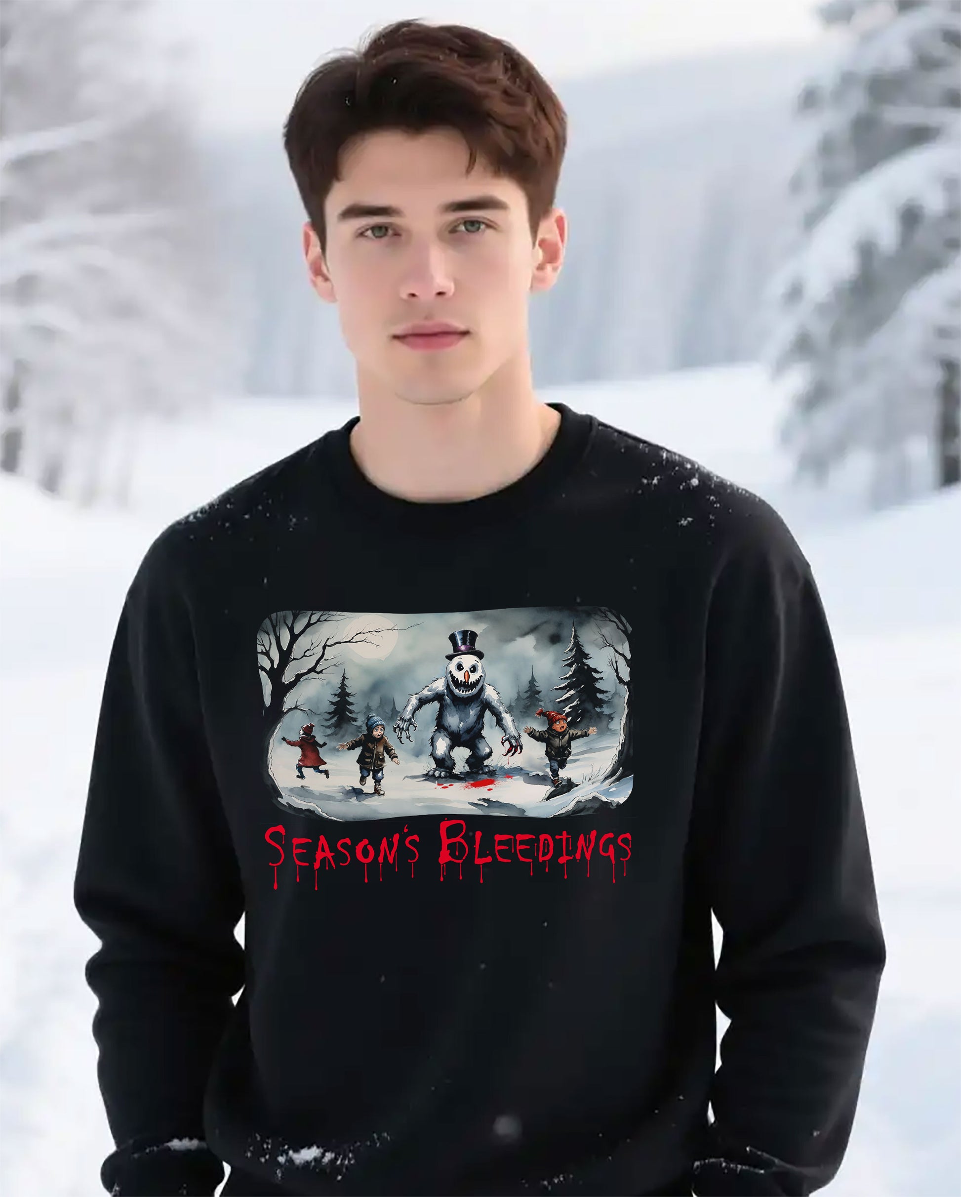 Season’s Bleedings Sweatshirt — Horror Snowman Holiday Crewneck - Gruesome Holiday Design