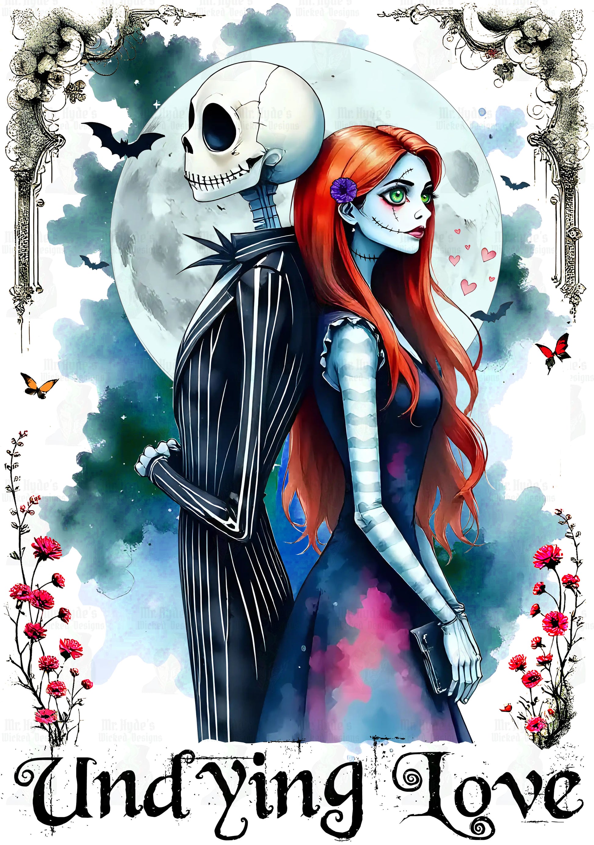 Undying Love Unisex Cotton T-shirt, Jack and Sally Halloween Tee, Gothic Love Story Shirt, Halloween Christmas Fan Apparel, Gothic Romance