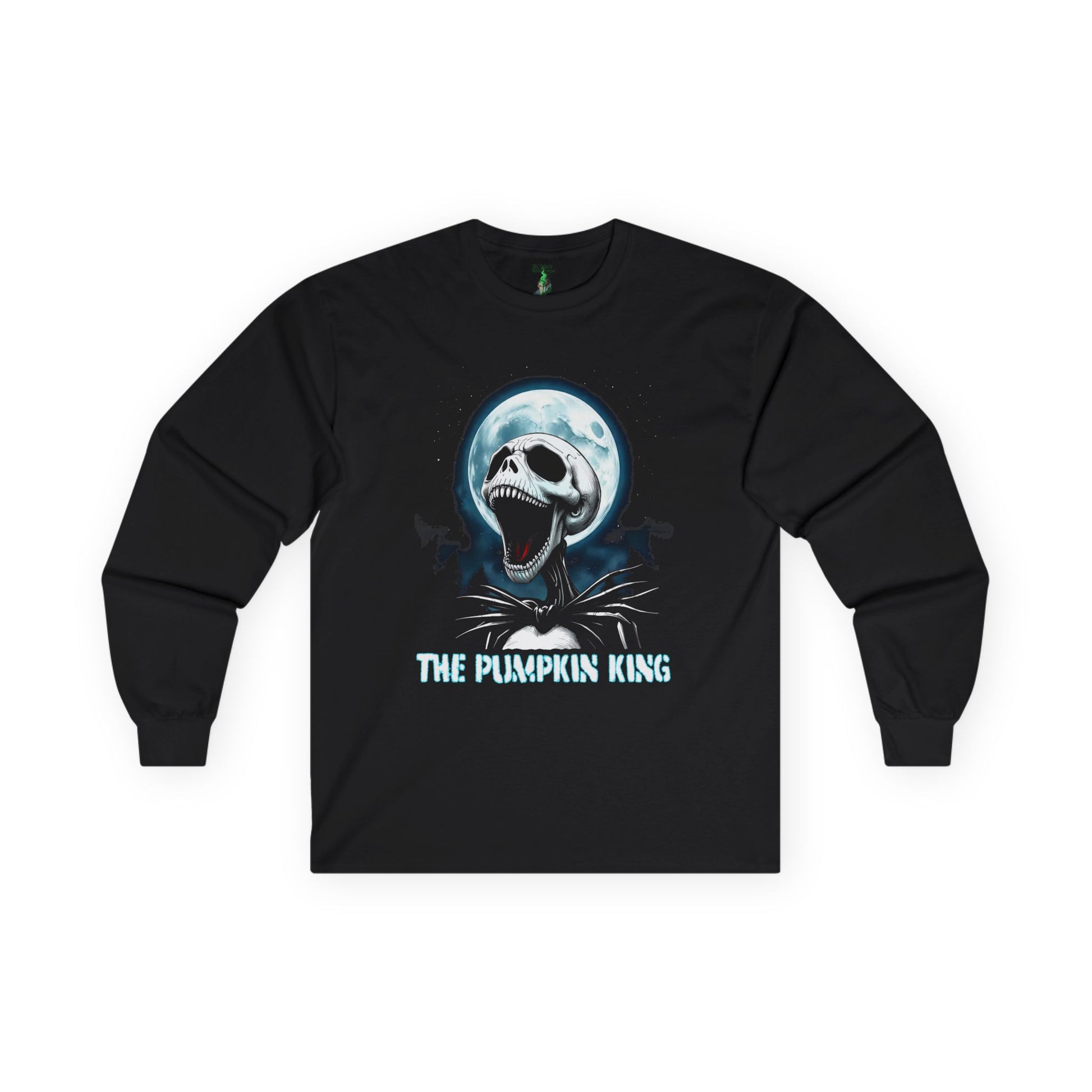 Embrace the spooky season with this Jack Skellington themed long sleeve tee. Perfect for Halloween enthusiasts, this shirt exudes a Halloween vibe and lets you channel your inner 'Pumpkin King'. Show off your love for Halloween and make a bold statement with this unique and eye-catching design. Ideal for anyone looking to stand out during the Halloween season and beyond.